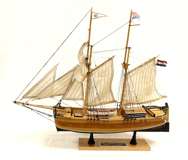 Model van een Zuid-Hollands Kofschip rond 1850 op schaal 1/50ste door Jean-Paul De Cooman. Volledig uit afval opgebouwd naar de plannen van W.K. Versteeg. .... zijn allereerste model en dat 8 maanden werk vergde. Meer uitleg in Het Disseltje editie nr. 4 uit 2025.